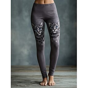 Dam Byxor Damasker Mysiga leggings Semester Vintage Streetwear Fullängd Naturlig Grafisk Katt Elastisk midja Mönster Bekväm Utomhus Elastisk Utomhus Streetwear Semester Mörkgrått Mörkgrå Svart Svart