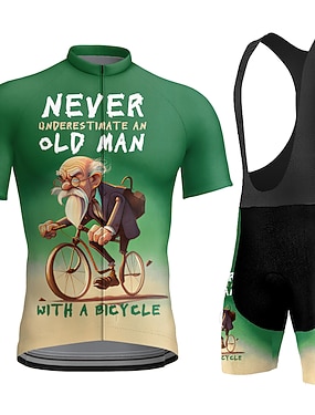 Herr Cykeltröja med Haklapp-shorts Kortärmad Bergscykling Vägcykling Blå Röd Marinblå Geometrisk Underskatta aldrig en gammal man med cykel Cykel 3D Tablett Snabb tork Bakficka Fuktabsorberande