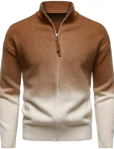 Herr Cardigan Tröja Beskuren tröja Blixtlåströja Stickad tröja Ribbad Sticka Vanliga toppar Dragkedja Lutning Hög krage Mode Klassisk Semester Dagliga kläder Kläder Höst vinter Vinrött Brun M L XL