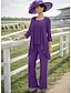 3 -delad kostym Golvlång Klänning till brudens mor Långärmad Rund hals Elegant Vintage Formell Bröllopsgäst Formell kväll Elastan med Enfärgat
