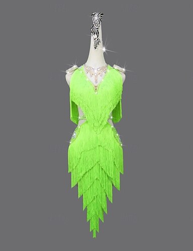 latinsk klänning med fransar för kvinnor, prestationsträning, hög spandex