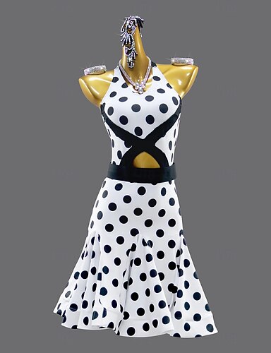 Latinamerikansk dansklänning med prickar för kvinnor, ärmlös salsa rumba danskläder