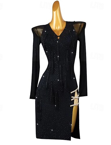 Latinamerikansk dans Klänning Tofs Kristall / Strass Stenar Dam Prestanda Träning Långärmad Elastan