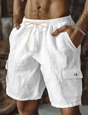 Herr Cargo-shorts Svett shorts Shorts Beach Shorts Casual shorts Elastisk midja Snörning Flera fickor Slät Komfort Andningsfunktion Knelängd Ledigt Dagligen Helgdag Semester Mode Svart Vit Oelastisk