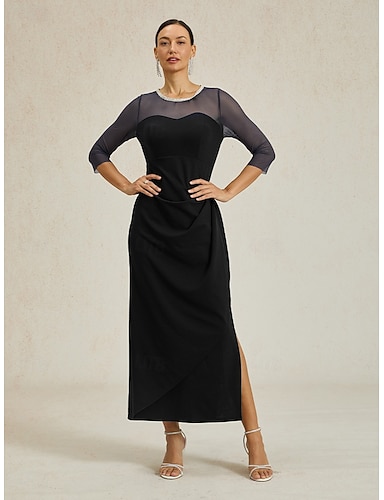 Dam Maxiklänning Sheath Dress Elegant party Formell Ensfärgat 3/4 ärm Rund hals Svart Sommar Vår Höst