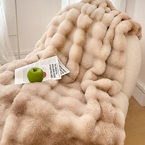tjock varm batikfärgad kaninpälsfilt fluffig lång plyschfilt för bäddsoffa på kontoret tupplur mysig bubbelfleecefilt för höstvinterdekor