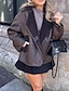 Dam Imitationsläderjacka Håller värmen Bekväm Ficka Knappar Ledigt Färgblock Dagliga kläder Utekväll Helgen Normal Nedvikt Lös passning Långärmad Ytterkläder Svart Beige Kaffe Höst Vinter