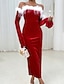 Dam Midiklänning Röd julklänning Balklänning Festklänning Mode Modern Jul Fest Kvällsfest Normal Färgblock Långärmad Över axeln Rubinrött Höst Vinter