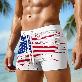 Självständighetsdagen Herrers Amerikanska US Flagga Stjärnor Patriotiska Badbyxor Badshorts Boardshorts Mid Waist Hawaiiansk Semester Sidofickor Nätfoder Elastisk Dragsko Midja