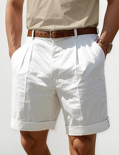 Herr Shorts Linne Shorts Klänning Shorts Sommarshorts Plisserade shorts Ficka Veck Rakt ben Slät Komfort Andningsfunktion Kort Ledigt Dagligen Helgdag Mode Designer Svart Vit