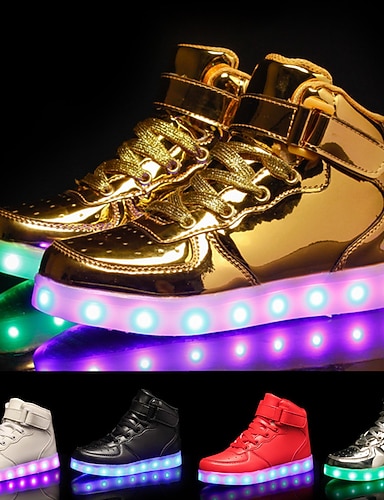 guld-led light-up high-top sneakers för barn och män med färgglad sula, justerbar rem och glänsande finish