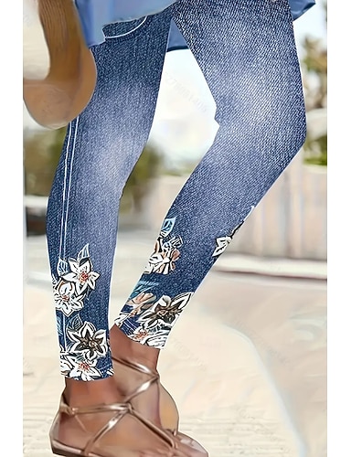 Dam Damasker Semester Vintage Mode Fullängd Hög midja Blommig Grafisk Tryck Håller värmen Mjuk Andningsfunktion Elastisk Dagligen Utomhus Semester Blå Rosa Mörkrosa Purpur Vår Höst Smal passform