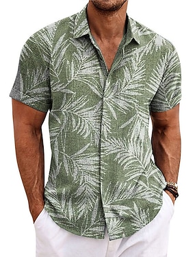 Herr Skjorta linneskjorta Strandskjorta Grafiska tryck Utomhus Semester Rodnande Rosa Grön Kaki Grå Kortärmad Hög krage Sommar Vår Kläder Mönster