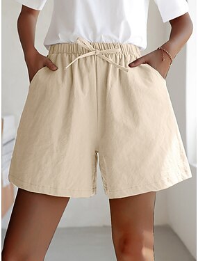 Dam Bomulds Blanding Konstbomullslinne Aktiv Shorts Streetwear Enkel Ledigt Kort Medium Midja Slät Snörning Ficka Mjuk Utomhus Bekväm Microelastisk Utomhus Semester Ledigt / vardag Aska Ljus