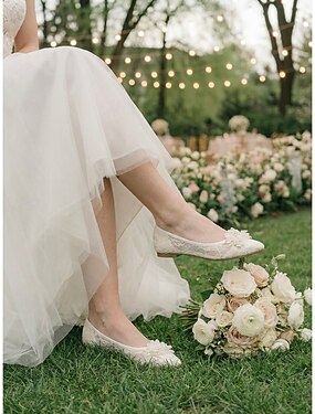 Elfenbenspärlfärgade plattskor för kvinnor, eleganta balettbrudskor för utomhusbruk i trädgården och gräsmattan
