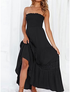 Dam Långklänning Maxiklänning Svart klänning Vardagsklänning Cocktail klänning Formell klädsel Stylish Grundläggande Ledigt Dagligen Semester Fest Normal Slät Långärmad V-hals Svart Sommar Vår