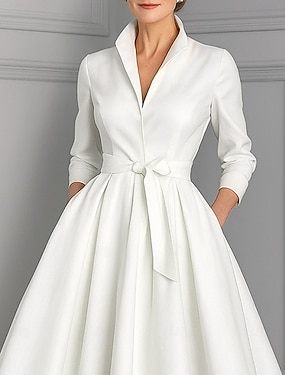 A-linje Ankellång Festklänning Cocktail klänning Bröllopsgästklänning Klänning till brudens mor Långärmad V-hals Elegant Vintage party Formell kväll Bröllopsfest Födelsedag med Plisserat