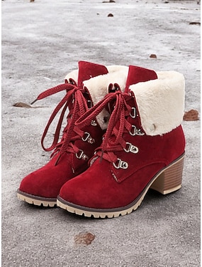 damstövlar med snörning i mocka med fuskpälskrage och blockklack – varma och snygga vinterstövlar för utomhusbruk