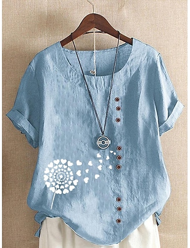 Dam Blus Knappar Mönster Hjärta Blommig Grafisk Vintage Tropisk Stylish Kortärmad Vanliga toppar Ledigt Helgdag Blå Vit Gul Purpur Grön Sommar Vår