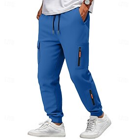 Herr Cargo träningsbyxor Träningsbyxor med raka ben Snörning Ficka Elastisk midja Slät Komfort Andningsfunktion Ledigt Dagligen Utomhus Mode Klassisk Stil Blå Svart