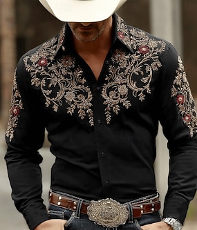 Herr Paisley Blomtryck Etnisk Skjorta Västerländsk skjorta Cowboyskjorta Långärmad Vintage retro Ledigt Utomhus Arbetskläder Vår Höst Nedvikt 3D-utskrift Skjortor med knappar Svart+ Khaki Svart