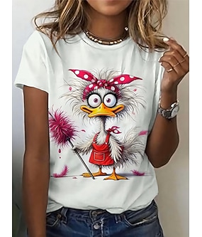 Dam T-shirt Mönster Grafisk Djur Bokstav Vintage Stylish Klassisk Kortärmad Rund hals Vanliga toppar Dagligen Helgen Vit Regnbåge Grå Sommar Vår
