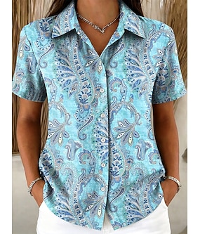 Dam Skjorta Knappar Mönster Grafisk Paisley Vintage Stylish Modern Kortärmad Tröjkrage Vanliga toppar Ledigt Dagligen Blå Gul Rodnande Rosa Marinblå Purpur Sommar Vår
