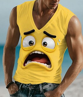 Herr 3D Roliga emotikoner T-shirt Ärmlös T-shirt 3D-tryck V-hals Skjorta Tropisk Utomhus Semester Hawaiisk Blå Gul Purpur Sommar Vår Kläder S M L XL XXL XXXL