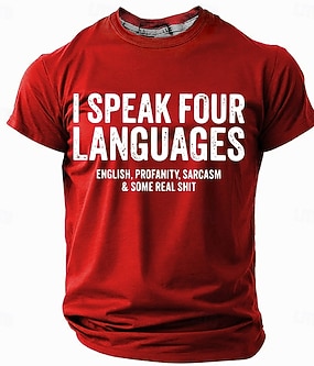 Herrars roliga grafik t-shirt | Jag pratar fyra språk engelska svordomar sarkasm lite verkligt skit kortärmad t-shirt