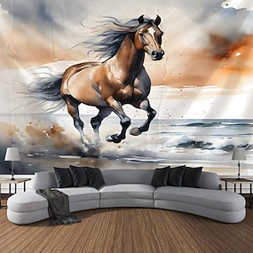 djur häst strand hängande gobeläng väggkonst stor gobeläng väggmålning dekor fotografi bakgrund filt gardin hem sovrum vardagsrum dekoration