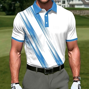 Herr Golf Linje Sport pikétröjor Kortärmad Polotröjor Skjortor med krage Ledigt Fritids- 3D-utskrift Knappar Sommar Vår Blå Brun Grön