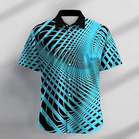 Herr Geometrisk Linje Abstrakt konst Skjorta Knapp upp skjorta Kortärmad Business Casual Dagligen Utomhus Semester Sommar Vår Nedvikt 3D-utskrift Linne som skjorta Blå Svart Vit Rubinrött Purpur