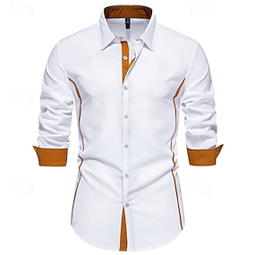 Herr Skjorta Sommarskjorta Casual skjorta Strandskjorta Skjorta med krage Knapp upp skjorta Svart Vit Vinröd Marinblå Blå Långärmad Färgblock Kavajslag Semester Hawaiisk Lappverk Kläder Polyester