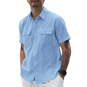 Herr Skjorta Arbetskläder skjortor Casual skjorta Arbetsskjortor Knapp upp skjorta Cargo skjorta Khaki grön Armégrön Mörkblå Kortärmad Slät Kavajslag Semester Hawaiisk Framficka Kläder 100 % bomull