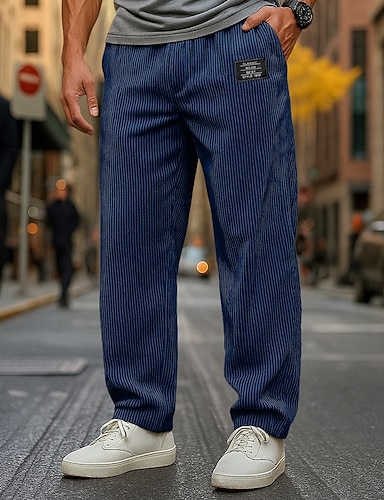 Herr Långbyxor Manchesterbyxor Säckiga byxor Träningsbyxor med raka ben Snörning Elastisk midja Ensfärgat Komfort Fullängd Utomhus Dagligen Streetwear Semester Mode Svart Marinblå Microelastisk