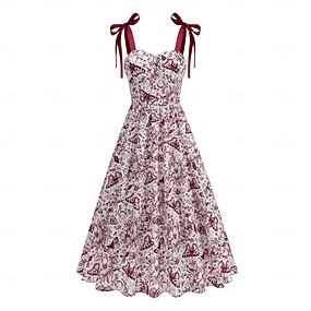 Femtiotal Retro / vintage Rockabilly Middag Flare Klänning Plusstorlekar A-linje Maskeradkläder Dam Semester Återföreningsfest Fest / afton Vuxen Klänning Vår & sommar