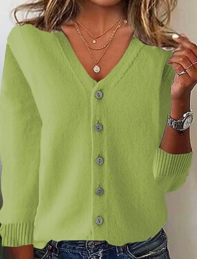 Dam Tröja Kofta Ledigt Mjukt Ren färg Ribbad Öppen front Ficka Stickat Långärmad Vanliga toppar Sticka Utomhus Dagligen Helgen Grön Beige Höst Vinter