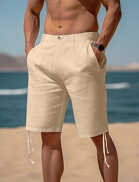Herr Shorts Linne Shorts Sommarshorts Beach Shorts Snörning Elastisk midja Flera fickor Slät Knelängd Fest Strand Hawaiisk Ledigt Vit Kaki Oelastisk