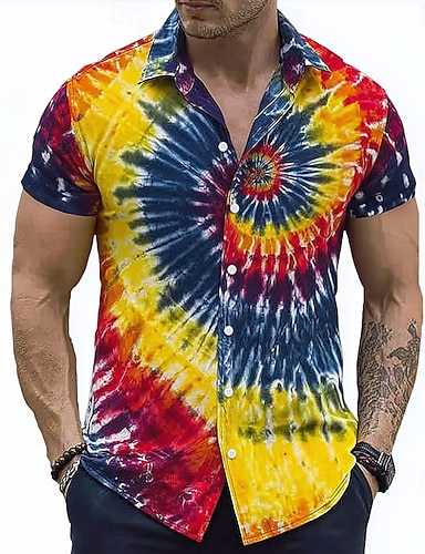 Herr Geometrisk Gradientfärg Abstrakt konst Skjorta Knapp upp skjorta Kortärmad Mode Casual Streetwear Semester Sommar Vår Nedvikt 3D-utskrift krage skjortor Blå Purpur Grön