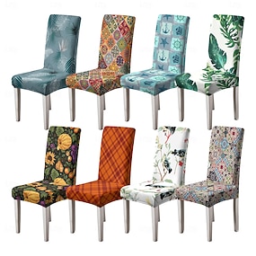 överdrag till matsalstol, pallstolsöverdrag, geometriskt tryckt polyesteröverdrag