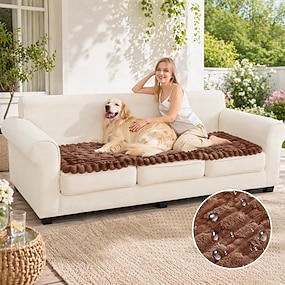 Vattentätt sofföverdrag för hundar, halkfritt plyschsoffskydd, passar 1/2/3/4-sitssoffa, maskintvättbart, husdjursvänligt möbelöverdrag