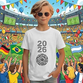 100 % bomull Barn Pojkar Vit Grafisk Fotboll T-shirt Blus Rund hals Kortärmad Utomhus Vardag Mode Streetwear Designer Tryck Sommar