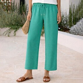 Dam Långbyxor Sommarbyxor Strandbyxor Casual byxor Semester Mode Grundläggande Fullängd Medium Midja Ensfärgat Slät Snörning Elastisk midja Rakt ben Komfort Lättvikt Mjuk Oelastisk Streetwear Strand
