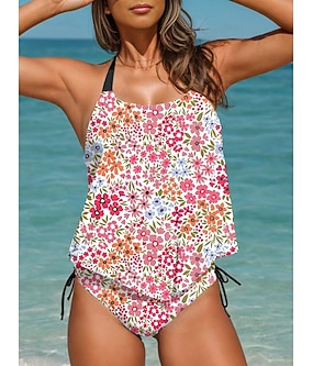 Kvinnors tankini 2-delad baddräkt audacious rygglös semester strandkläder blommig halterneck ärmlös baddräkter