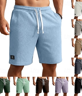 Herr Våffelshorts Svett shorts Shorts Bermudashorts Säckiga Shorts Snörning Elastisk midja Slät Komfort Sport Knelängd Utomhus Ledigt Dagligen Mode Streetwear Svart Blå Microelastisk