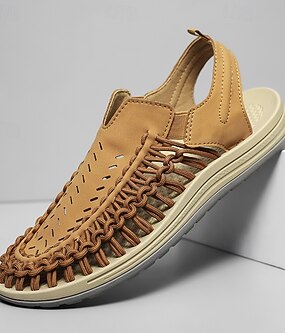 solbrända slip-on utomhussandaler för män med flätade detaljer, avslappnad stil för sommar- och strandaktiviteter