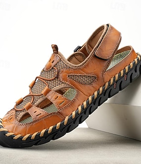 Herr Sandaler Handgjorda skor Split läder Andningsfunktion Bekväm Halksäker Snörning Gul-Brun Svart Brun