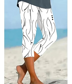 Damleggings Capri-byxor Hög elasticitet Semester Vintage Mode Kalsonglängd Hög midja Grafisk Prickig Tryckning Termisk Varm Andningsbar Mjuk Stretchy Utomhus Gatuliv Daglig Vit