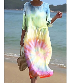 Kvinnors Maxi Klänning Linnen Liknande Sommarklänning Skift Klänning Semester Casual Strand Gå Ut Löst Passform Ombre Grafisk Abstrakt 3/4 Längd Ärmar Crewneck Gul Rosa Ametist Sommar Vår Höst