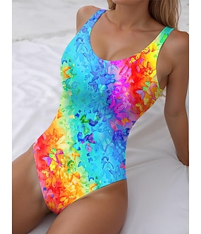 Kvinnors en-dels baddräkt slankande mage kontroll baddräkter flerfärgad fjärilstryck ärmlös scoop hals stretch tyg sommar strandkläder poolside mode livlig s tillgänglig i flera storlekar